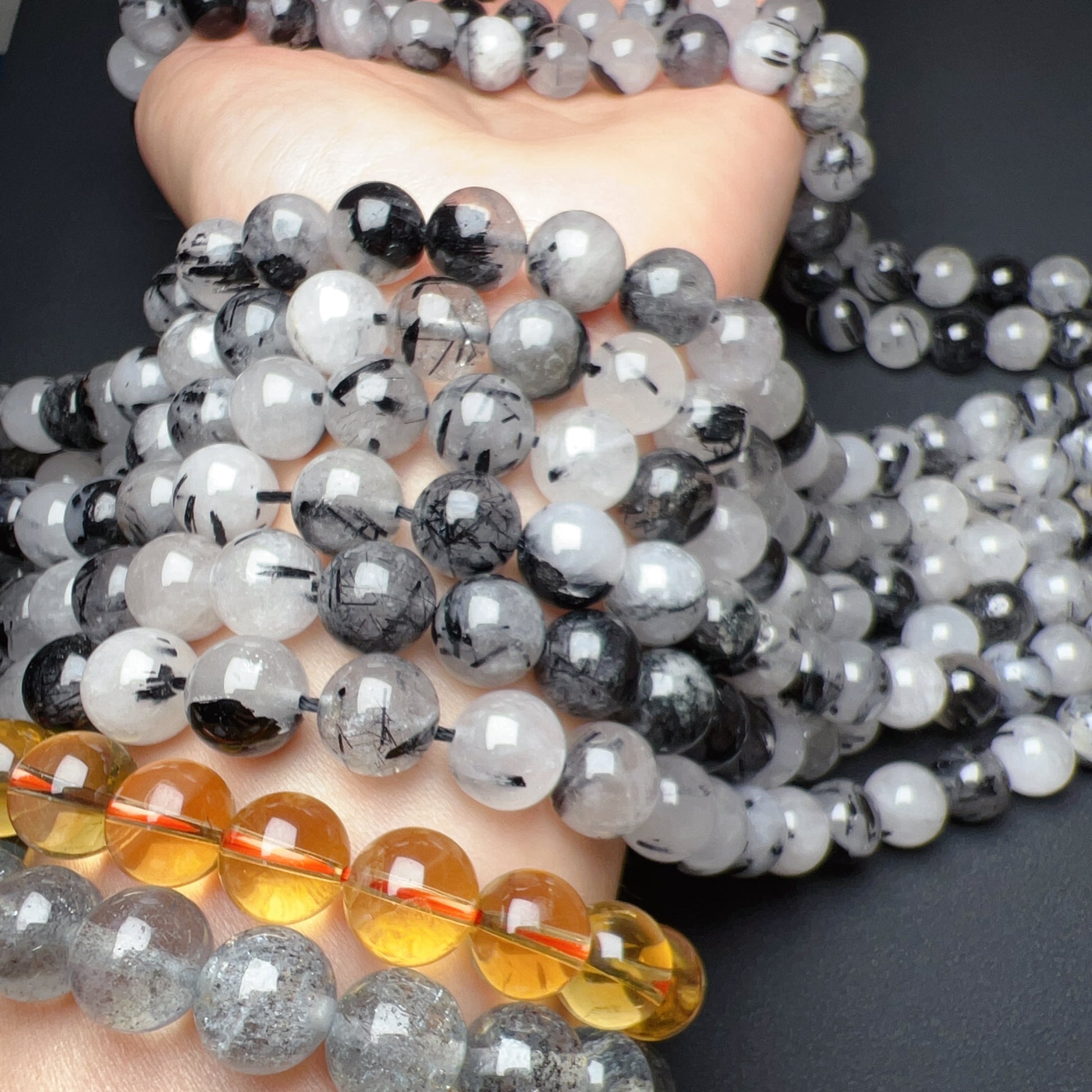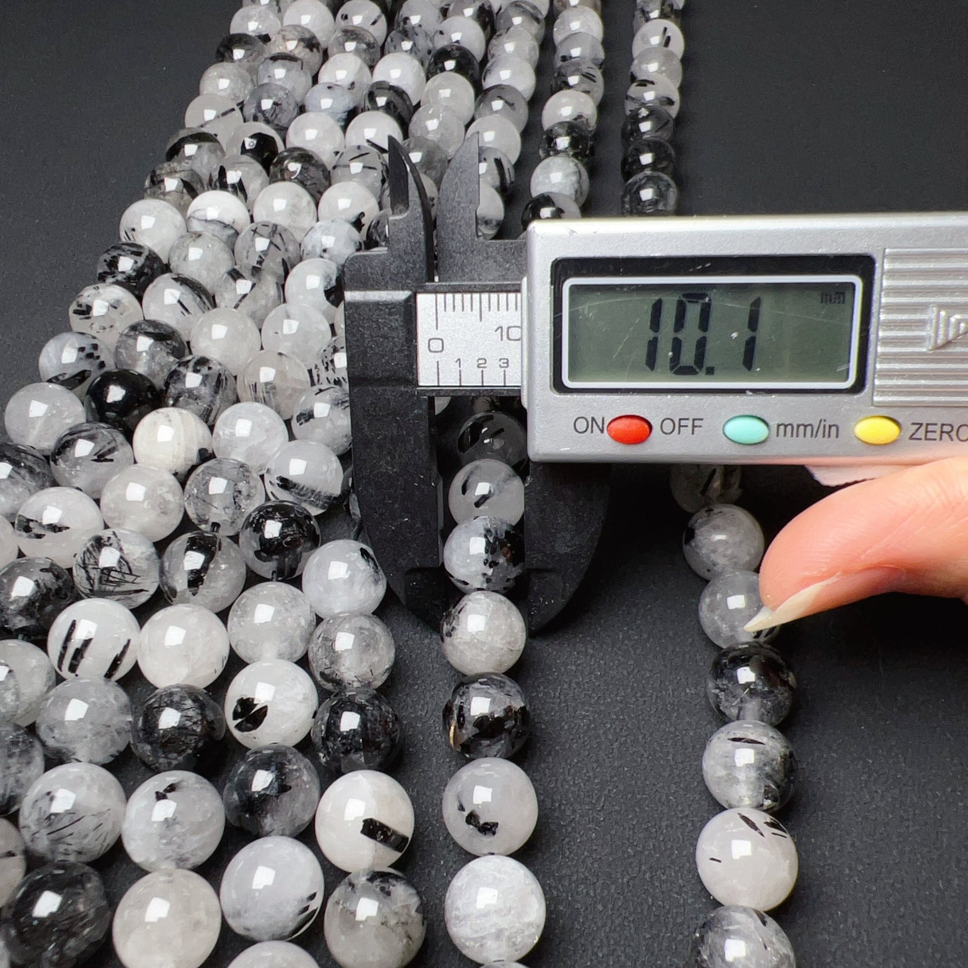 10mm Natural Black Tourmalated Quartz Round Bead Strands