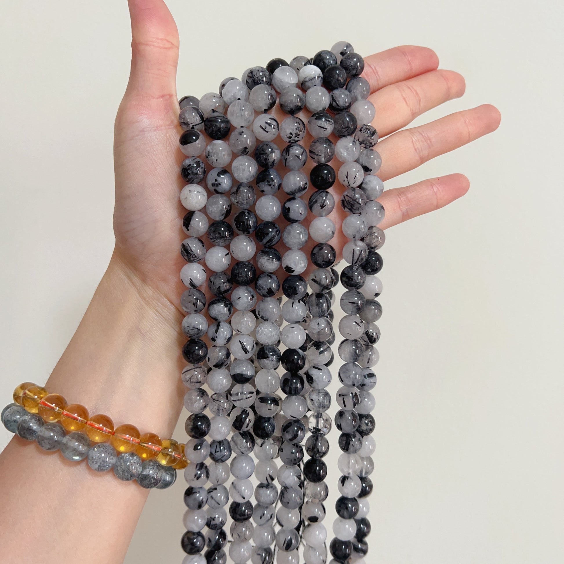 10Mm Natural Black Tourmalated Quartz Round Bead Strands For Diy Jewelry Project